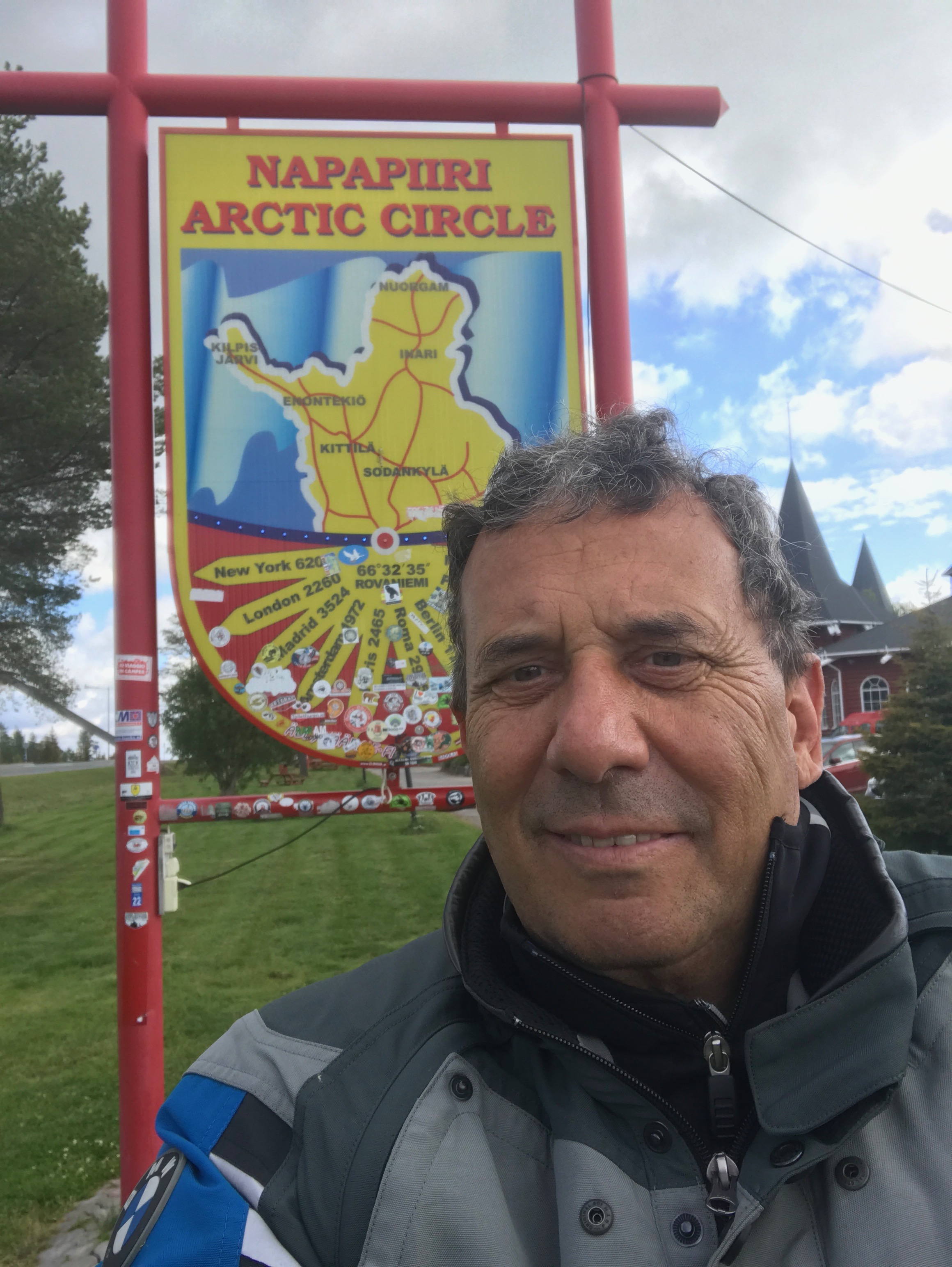 La scelta è di andare a Est tralasciando Varsavia, l’autostrada che va a Lublino e poi sale costeggiando l’Ucraina è una pista per aeroplani. Corrono i polacchi e i 140 km non bastano devi guardare lo specchietto, le macchine arrivano troppo veloci. La Polonia a Est verso il confine con i paesi Baltici è una vasta regione agricola, linda, con le villette pulite e le strade ordinate; alberi, strade ottime; il navigatore fa il suo dovere ma la Polonia non finisce mai. Arrivo nei pressi del confine a sera, esausto; due angeli, un polacco e uno spagnolo mi si affiancano inizia una scorribanda simpaticissima alla ricerca di hotel. Tutto pieno. Il polacco alla fine ci porta dopo lunghe consultazioni con i suoi concittadini in un hotel a una stella: non importa, accettiamo e paghiamo 20 euro per due camere; e la doccia è un mezzo disastro ma la cena con lo spagnolo nella quale ci fa compagnia una simpatica cameriera con un inglese ottimo, è davvero piacevole e buona. Piove la mattina dopo. Umido. Finalmente i paesi baltici. Incubo autovelox. Salto Riga arrivo a Tallin sotto una pioggia battente alle 10 di sera. Un giorno di viaggio dietro i camion. Un trucco: gli autovelox fissi non hanno la fotocamera che riprende la targa posteriore! Uno svedese vista la mia media con la sua Adventure mi fa fa da apripista. Lo seguo a ruota freno quando frena, rapidamente i km scorrono e ci salutiamo alle porte delle città. Tallin! Albergone di lusso 100 euro e passa la paura mi presento alla hall con l’antipioggia gocciolante. A letto senza cena, ristorante chiuso sono le 23. Dormo alla grande, leggero, dimagrisco, giorno dopo giorno, mi sento sempre meglio. La mattina alle nove veloce visita del centro storico aggregandomi a un gruppo di italiani. Ma la testa è già al traghetto per Helsinki. Un gruppo di cecoslovacchi che girano anche con il padre di uno di loro sul sedile posteriore e le tende, si le tende! Mi chiedono dove ho dormito e quanto ho speso. Glisso. Ma sono di una simpatia incredibile girano così tutta l’Europa in gruppo, zii, mogli, e padri e figli! Ruvidi ma calorosi. Il traghetto parte il pomeriggio, siamo tante motociclette. Il tempo all’arrivo è piovoso, usciamo dal traghetto con le incerate indossate prima e il navigatore già pianificato per la prima meta della Scandinavia: i laghi del Sud. La città è un caos di macchine sotto la pioggia quando sbucando dalla strada si apre la piazza della stazione, bellissima, sembra un fumetto di quelli della nostra infanzia, qualcosa di infantile *di già visto! E tutta quella folla! La pioggia non dà tregua bisogna prendere l’autostrada: finalmente la Scandinavia si apre davanti a me; tutto cambia; autostrada stupenda, macchine rare ogni 200 metri, corro ma i limiti sono severi, non riesco a chiudere il gas e mi affido allo stellone della fortuna; un italiano mi racconterà al ritorno che a 130 è stato inseguito da due poliziotti con le moto multato di 300 euro con prova attraverso l’etilometro. Sono fortunato arrivo la sera a Savolinna ma non c’è un albergo libero, solo un campeggio con una baita di legno spartano ma con bagno pago 140 euro per la sistemazione che vale 40 al massimo. I prezzi lievitano. Tutto è caro. Fa freddo, umido. Il giorno dopo lascio di buon mattino la zona dei laghi e mi butto verso la costa, le temperature salgono e arrivo a Oulu, splendida città. Albergo meraviglioso vicino al fiume, architettura splendida, piscina, sauna, due ragazze dello staff gentilissime e calorose che si fanno in quattro per accogliermi, cena meravigliosa (il tutto a 130 euro) booking funziona! Oulu è davvero gradevole da girare in bicicletta e dopo una visita alla bmw per trovare altro materiale da mettere come intimo (pantalone e maglia) e sotto giacca in pile. Ma siamo sempre intorno ai 20 gradi per ora. La mattina non sto nella pelle: Rovaniemi! Trecento km e arrivo nel paese di Babbo Natale! Visita al centro foto con Babbo Natale souvenir ottimo pranzo al self service e due svizzeri m’incoraggiano! Non ti fermare! Inari è a trecento km. E sia, parto attraverso foreste laghi e foreste senza incontrare nessuno. Metto il cruise control ( devi andare a 80) sono euforico è bellissimo, la mente si distende, le soste sono occasioni per un tè con persone meravigliose in baite che si affacciano sui laghetti, la natura domina e ti accoglie. Le renne attraversano a gruppi la strada, una è albina, un’altra si ferma al centro della carreggiata! La Finlandia è davvero inaspettata per il calore dei suoi abitanti. Inari la città sul più grande lago della regione con il museo storico dei Lapponi è in realtà una frazione di case sparse: il fascino è unico: è il grande Nord che inizia a intravedersi in questo primo scorcio di Lapponia! Arrivo nell’hotel caratteristico Lappone prenotato con booking; si distende con tre corpi separati in legno lungo un fiume e un ristorante a veranda che guarda le acque. Cena meravigliosa! Sauna in camera. Due Bmw con targa italiana, sono due Adventure, sono parcheggiate nel piazzale dell’albero. Domani è il grande giorno: sono a 300 km da Caponord,*scruto il meteo sul telefonino con apprensione, Pioverà? Rimando? O Vado? Per la prima volta sono un po’ agitato.